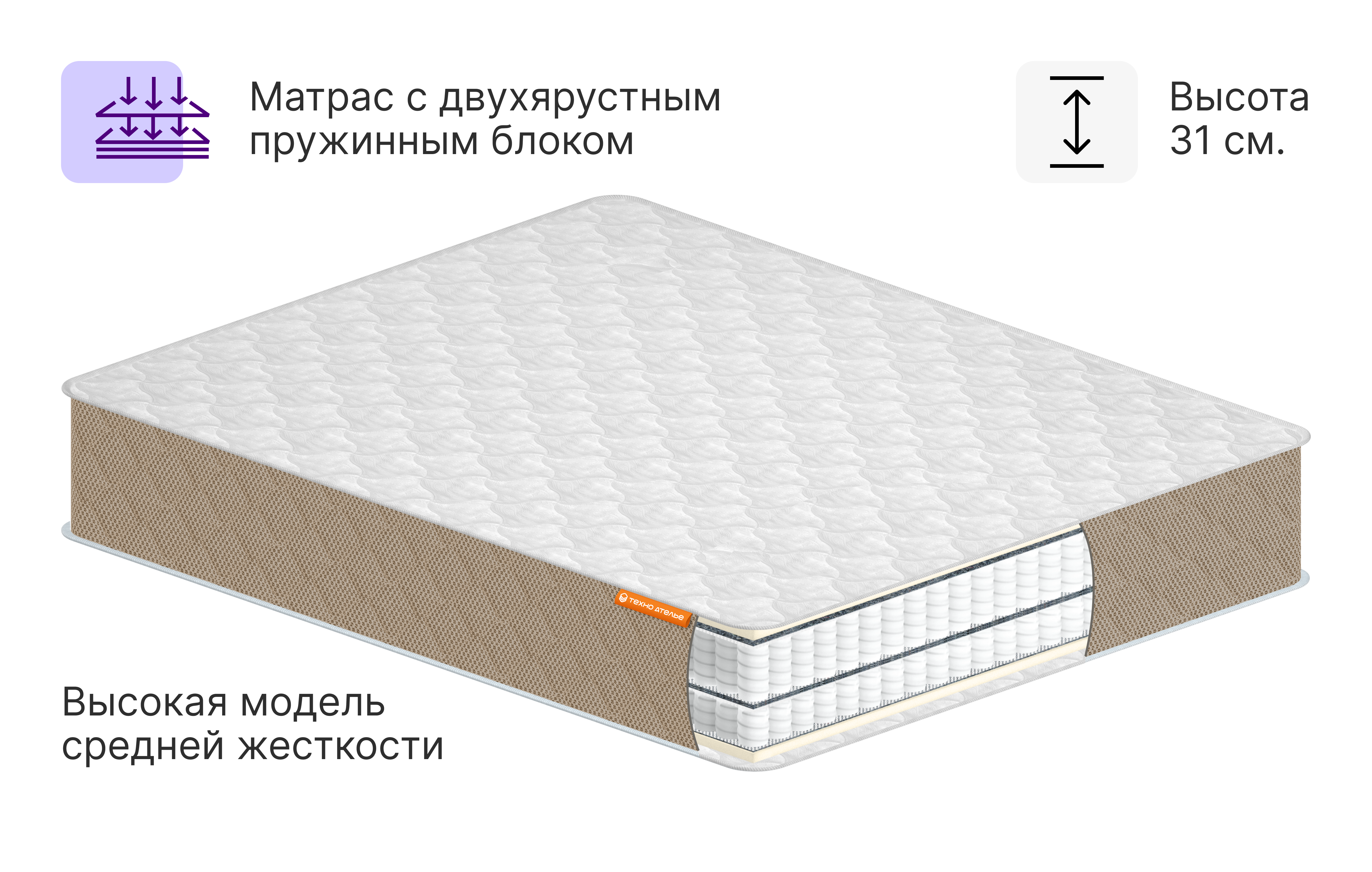 - Высокий матрас средней жесткости