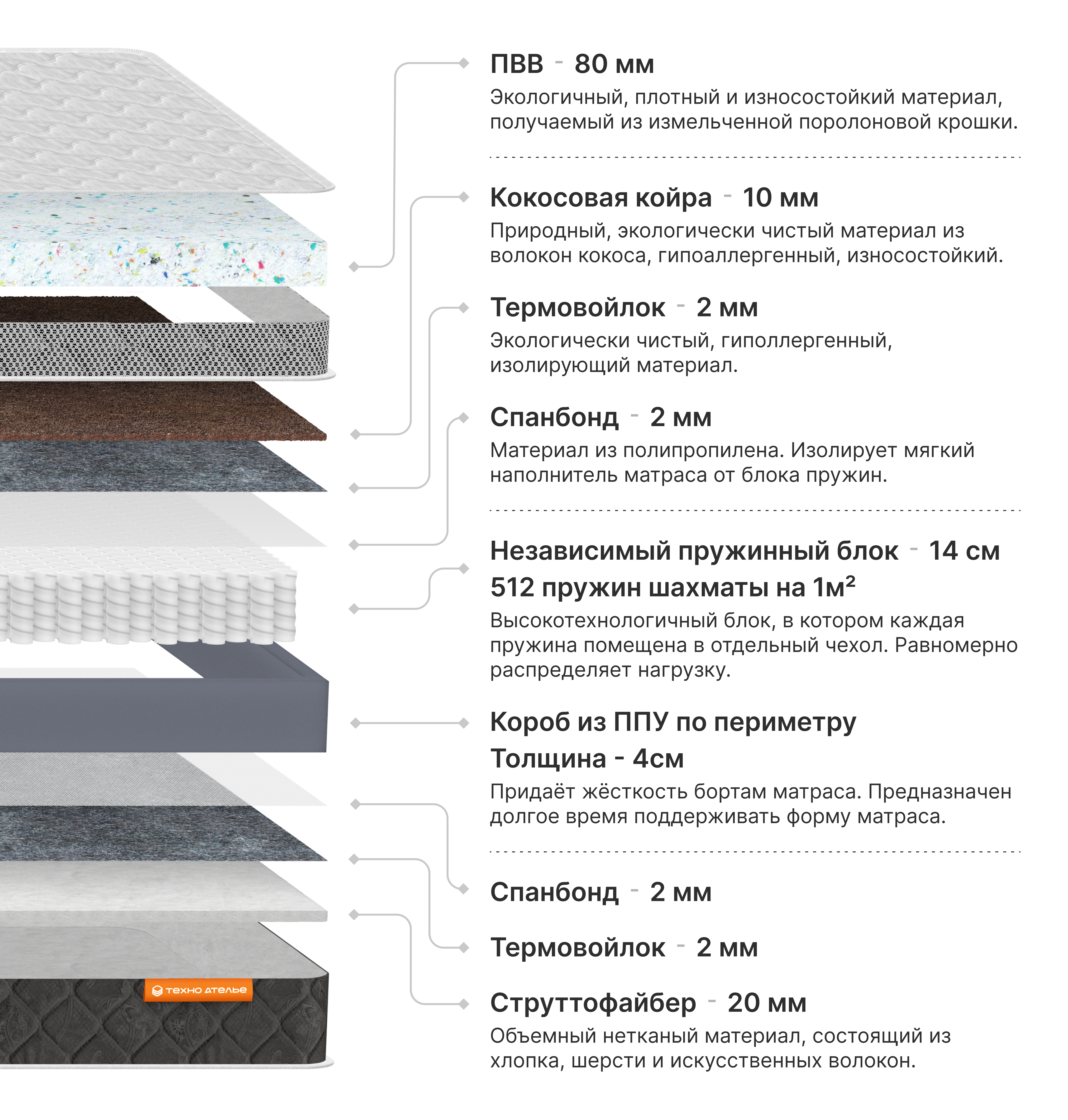 Уникальный матрас с идеальной конструкцией в безупречном исполнении. Материалы в комфортных слоях матраса и независимый пружинный блок Шахматы придают ему анатомические свойства, позволяя поддерживать позвоночник в оптимальном для здорового сна положении.
